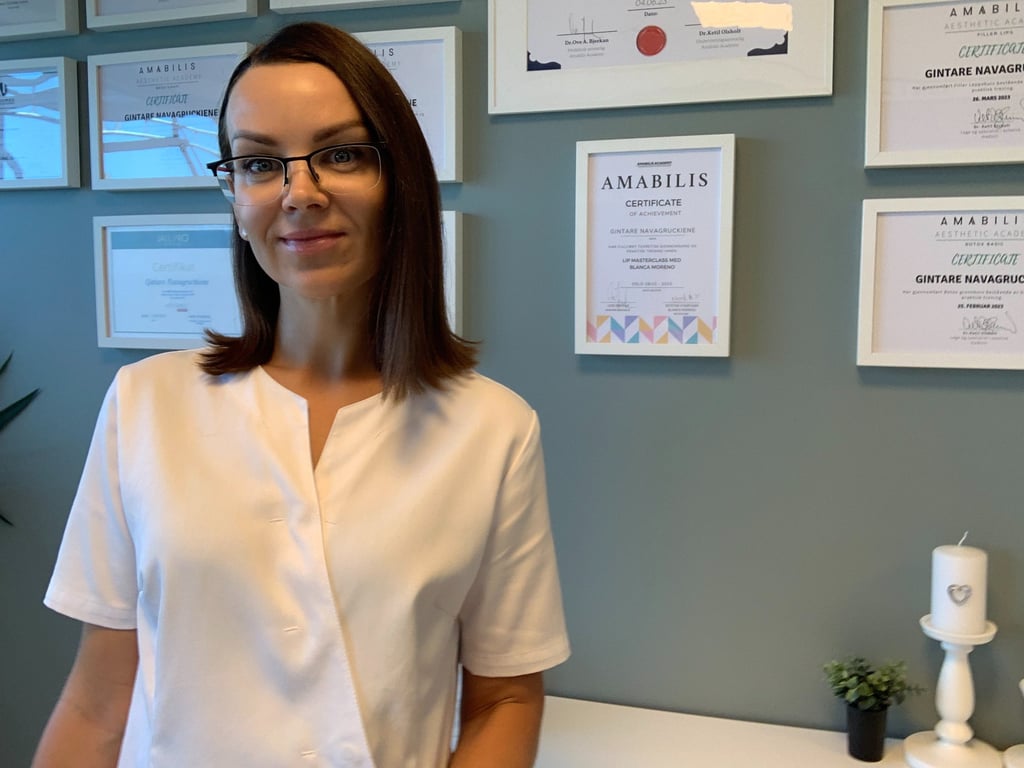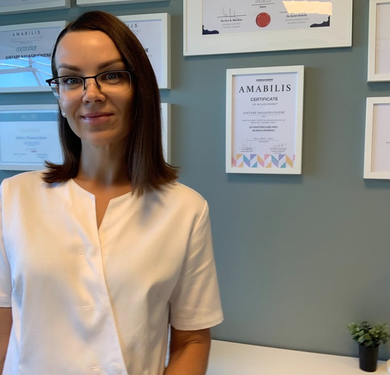 Mano vardas Gintarė, man 40 metų ir turiu 16 metų slaugytojos profesinę patirtį. 2023 m. baigiau estetinės medicinos ir injekcijų studijas „Amabilis“ akademijoje Osle. Atsakingai, kruopščiai ir su užsidegimu atlieku visas procedūras. Atidžiai įsiklausau i savo klientų poreikius ir norus ir labai stengiuosi patenkinti ir viršyti šiuos lūkesčius. Man svarbu, kad mano klientai gautų geriausius rezultatus ir būtų patenkinti savo išvaizda.
