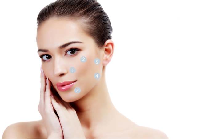 Injekcijos leidžiamos paviršutiniškai į 5 taškus, iš kurių hialurono rūgštis pasiskirsto po visą veidą.